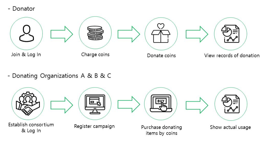 기부자는 Web을 통해 원장에 저장된 기부 단체의 기부금 사용 내역을 확인 해 볼 수 있어 신뢰성이 확보할 수 있다.